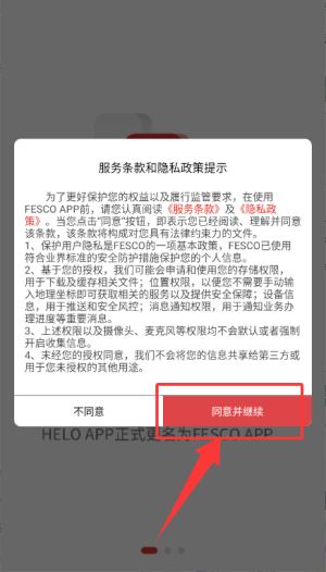 1、在服務(wù)條款和隱私政策窗口點擊"同意并繼續(xù)",即可進(jìn)入應(yīng)用。