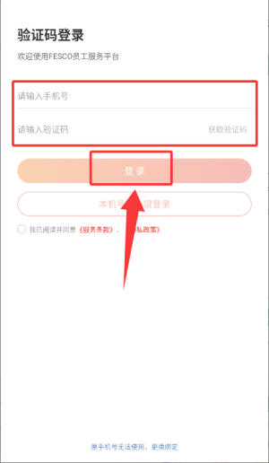 3、輸入手機號與驗證碼后點擊登錄,進(jìn)入員工服務(wù)平臺。
